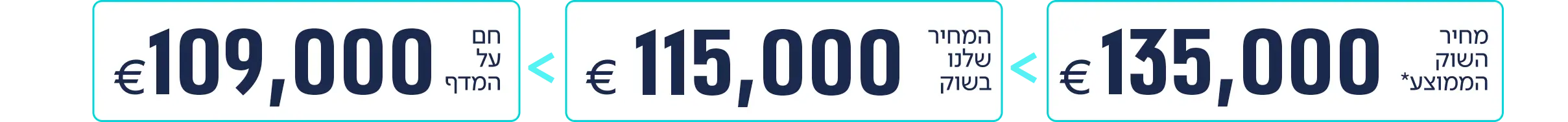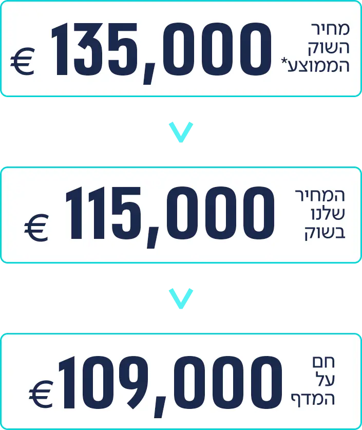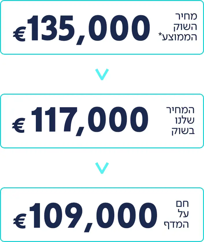 המחיר 109,000 אירו מתייחס לדירת סטודיו סטנדרטית, בהתאם למלאי הקיים המשתנה מעת לעת. המחיר אינו כולל מיסים, עמלות רכישה, עלויות רישום או הוצאות נלוות אחרות. התמונות להמחשה בלבד. העסקה כפופה לחוקי קפריסין ולתנאי החברה. המחירים, המלאי והנתונים עלולים להשתנות ללא הודעה מוקדמת. החברה אינה מתחייבת לתשואה, השכרה או עליית ערך עתידית של הנכס. ״מחיר השוק הממוצע" המוצג הינו הערכה כללית בלבד, המבוססת על נתוני עסקאות ומידע ציבורי שנאסף ממקורות שונים, ואינו מהווה הצעה מחייבת, שומת שמאי או התחייבות מטעם החברה. ייתכנו פערים בין המחיר המוצג לבין מחירי שוק בפועל, בהתאם למיקום, מפרט הדירה, שלב הבנייה ותנאי העסקה.